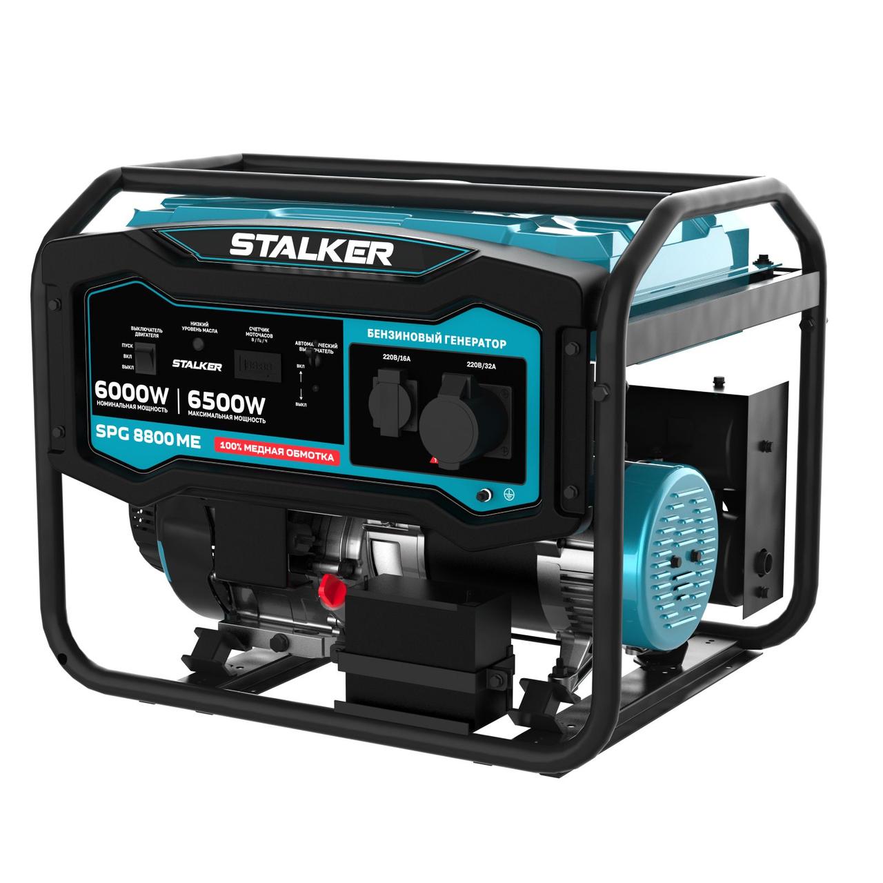 Бензиновый генератор STALKER SPG 8800 ME - предназначен для использования, в качестве аварийного источника электроснабжения. Всегда обязательно учитывайте суммарную мощность всех подключаемых приборов с учетом коэффициентов пусковых токов для каждого прибора. Не подключайте два, или более генераторов, параллельно.