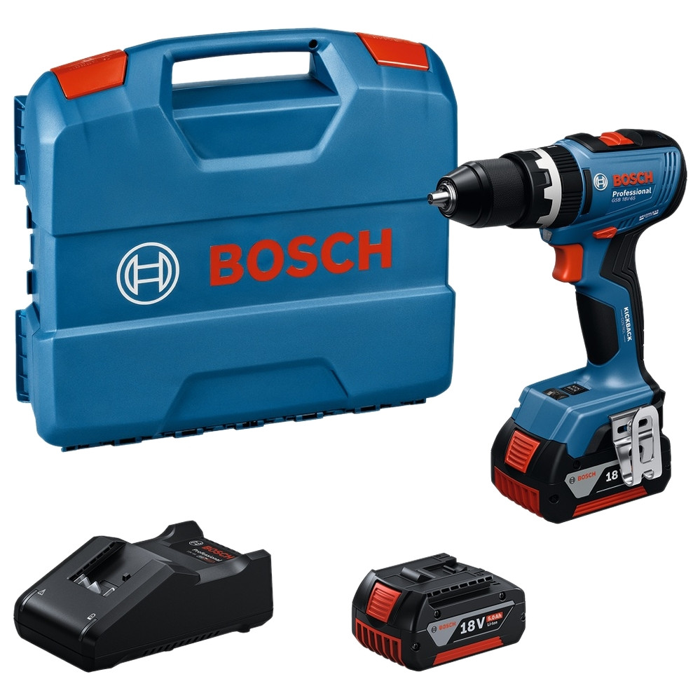 Аккумуляторная ударная дрель-шуруповёрт Bosch GSB 18V-65 06019N3100 - если вы ищете универсальную аккумуляторную дрель-шуруповерт, мощность которой достаточна даже для выполнения сложных резьбовых соединений, обратите внимание на дрель-шуруповерт Bosch GSB 18V-65 Professional. Она с легкостью сверлит металл, дерево или пластик благодаря повышенному крутящему моменту 31/65 Н·м и частоте вращения 0–550/0–2100 об/мин и имеет дополнительную ударную функцию для сверления кирпичной кладки. Ограниченные и неудобные пространства — не проблема, ведь длина головки этого компактного инструмента составляет всего 175 мм. Мы позаботились о вашей защите с помощью переключаемой системы KickBack Control, которая предотвращает случайное отбрасывание инструмента. Кроме того, освещение вашего рабочего пространства будет улучшено благодаря двум рабочим фонарям. Если вы занимаетесь установкой мебели, плотницкими работами, работаете с электрикой, металлом или камнем, дрель-шуруповерт Bosch GSB 18V-65 Professional станет вашим незаменимым помощником при выполнении сложных резьбовых соединений. Она может сверлить в древесине отверстия до 35 мм, закручивать шурупы до 10 мм и сверлить в металле и кирпичной кладке отверстия до 13 мм.